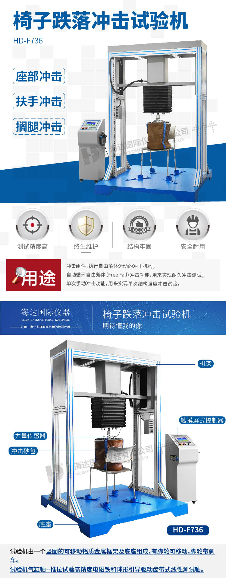 辦公(gōng)椅跌落衝擊試驗機HD-F736