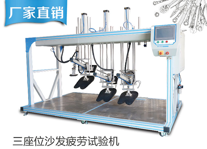 三(sān)座(zuò)位沙發疲勞測試儀HD-F761是模擬日常使用條件下,檢(jiǎn)驗沙發對長期重複性載荷的承受能力。試驗沙發(fā)的座、背和扶手的耐久(jiǔ)性, 試驗時將一定形狀(zhuàng)、質量的(de)加載模塊,以規定的加載形(xíng)式、頻率,分別對(duì)座、背和扶手表麵重複加載 設計標準:EN 4875 | ||