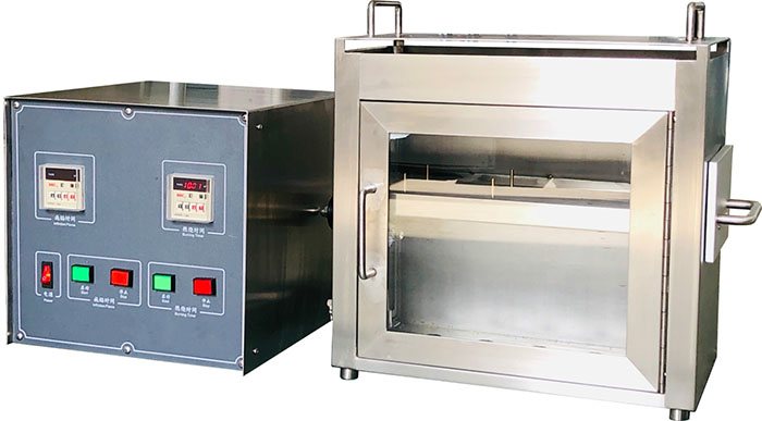 本汽車內飾材料燃燒試驗機是根據GB8410-2006標準設計製造,適用(yòng)於汽車內飾(shì)材料水平燃(rán)燒特性的評(píng)定。本機控製箱及燃燒箱均為不鏽鋼製做,外型美觀,耐(nài)煙、氣(qì)腐蝕,且控製係統自動化程度高,具有自動點火,自動供氣,自動計時,自動結束試驗等功能,觀察(chá)記錄方便,使用穩定可靠。