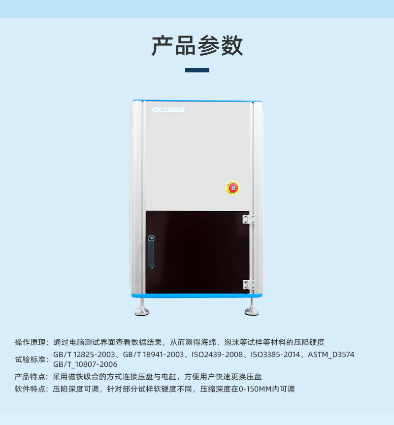 本機用於測定多孔彈性材料的凹入硬度(dù)。可(kě)對(duì)聚氨脂海綿泡沫試樣(yàng)按照標準的規定進行測試,準確測出海綿、泡沫等材料的壓陷硬度,另(lìng)也可用於對已(yǐ)生產出的座椅(yǐ)泡(pào)沫(如靠背、座墊泡沫等)進行規定壓陷硬度的測量,準確(què)測出座椅各泡沫(mò)件的壓(yā)陷(xiàn)硬度。此外,本產品還(hái)可以針對泡沫聚合材料進行往複壓縮試驗,測定試樣的厚度減小值和殘餘變(biàn)形率(lǜ),由此(cǐ)了解材料的動(dòng)態疲勞(láo)特性。 疲(pí)勞(láo)測試:將一個方(fāng)形試樣放入到測試(shì)儀的(de)下平台上,用一個麵積比試樣(yàng)小一些(xiē)的壓盤反複地凹入試樣,使每一次循環所(suǒ)達到的最(zuì)大負載值保持在規定範(fàn)圍內,通過(guò)一定次數後,評定試樣的性(xìng)能。 壓(yā)陷硬度測試:將方形試樣(yàng)放入到測試儀的下(xià)平台(tái)上,上壓盤以規定速(sù)度向下壓縮一定的尺寸,按標準要(yào)求的A法(B法、C法)進行測試,荷(hé)重元將感應到的壓(yā)力反饋給電腦處理,通過電腦測試界麵查(chá)看數據(jù)結(jié)果(guǒ),從而測得海綿、泡沫等試樣等材料的壓陷硬度。 設計(jì)標準:GB/T 12825-2003、GB/T 18941-2003、ISO2439-2008、ISO3385-2014、ASTM_D3574、GB/T_10807-2006 | ||