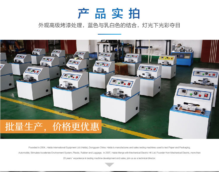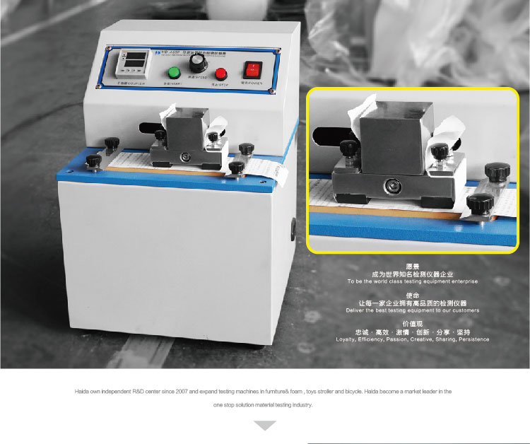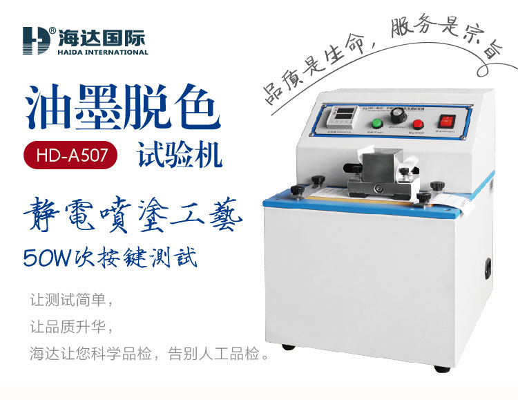 油墨(mò)脫色試驗機用來測試油墨粘著力,以此來判斷油(yóu)墨的好壞.本機可做幹磨(mó)測試,濕磨測試,脫色變化測試,紙張模糊測試及特殊磨(mó)擦測試。墨跡耐磨測試是為評估紙張或紙板上墨跡的耐磨損或耐磨擦力而設計的測試方法。 設計標(biāo)準:JIS-5071-1,TAPPI-UM486,GB7706 | ||