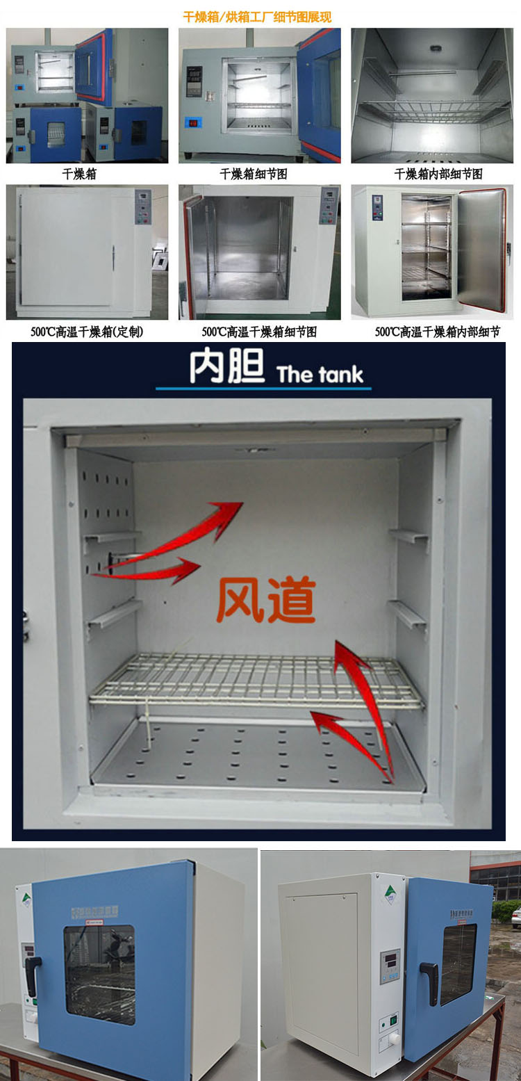 型號內膽材質內箱尺寸(cùn)功率(w)HD-E804-25碳(tàn)鋼25*25*25CM600HD-E804-25S 不鏽鋼25*25*25CM600HD-E804-35 碳鋼35*35*35CM1300HD-E804-35S 不鏽鋼35*35*35CM1300HD-E804-45 碳鋼45*45*35CM1800HD-E804-45S 不鏽鋼(gāng)45*45*35CM1800HD-E804-55碳鋼55*55*45CM2800HD-E804-55S 不鏽鋼55*55*45CM2800HD-E804-75S 不鏽鋼75*60*50CM4000HD-E804-100S 不鏽鋼100*80*80CM6500 其他可按要求定製 1、溫度範圍:常溫~250℃ , 2、波(bō)動度±2℃ 3、精度:±1% 電熱絲(sī):3KW,4KW 4、馬(mǎ)達:1/4HP 5、電源:1∮,AC 220V,14.5安;1∮,AC 220V,19A 6、幹燥箱材(cái)質:內膽為碳鋼/不鏽鋼,外箱為鋼板噴塗表麵 7、溫度設定方式:數顯(xiǎn)式(shì)可調 | ||