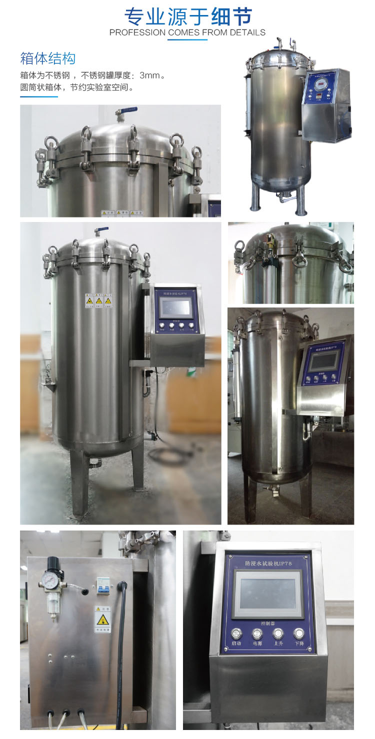 防(fáng)浸(jìn)水試(shì)驗箱適用(yòng)於考核電工產品,外殼和密封在浸水環境下(xià)能否保證設備和元件良好性能的試驗(yàn)。 設計標(biāo)準(zhǔn):IEC 60529 – IPX7 & X8 、GB2423,38-90、GB4706.32-2004 | ||
