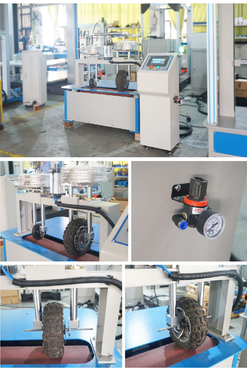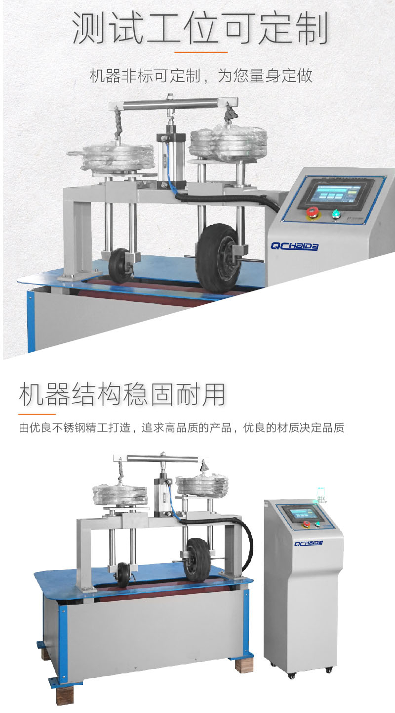 滑板車輪子耐磨測試機適用於小型輪子的耐磨(mó)試驗(yàn),如旅行(háng)箱、滑冰鞋(xié)、童車、手推車的輪子。可(kě)測得(dé)輪子材料的耐磨(mó)性及(jí)整體結構有無磨損及變形,試驗的結(jié)果可供作(zuò)改進的參考。 測試方法:置模型嬰兒於車台中,將車台(tái)固(gù)定於測試台上,調整輸送帶速度1.4±0.1m/sec(5kw/h±3.6 kw/h)。持續測試64小時(shí)後,目視車台有無損壞。達設定次數能自(zì)動停止操作。試驗速度:可調LED顯(xiǎn)示 時間設定:9999 分鍾(zhōng)負荷:重量(約):約95kg 設計標準:滿足QB/T 2917-2007 |